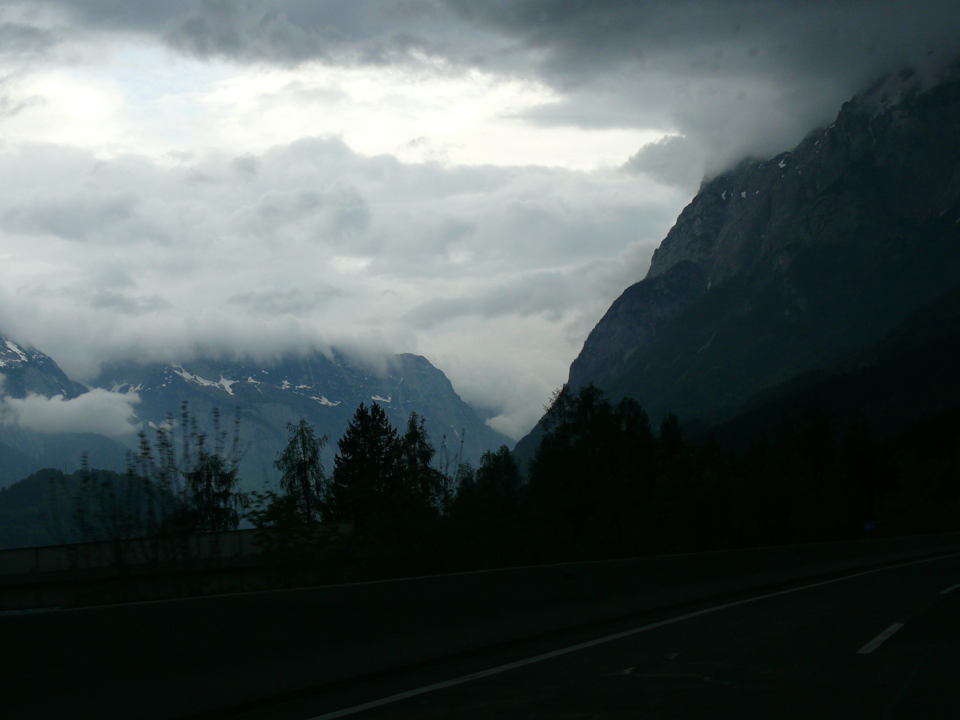 Das große Hochgefühl, das mich sonst immer überfällt, wenn ich auf die Alpen zu fahre, bleibt dieses Mal aus. Die Berge hüllen sich übergangslos in dichte graue Wolken und der Regen prasselt ohne Ende. Ich fühle mich nach Mordor versetzt und gleich werden die Nazgul zwischen den Bergen anfliegen. Bei solchem Wetter hat man bestimmt den „Herr der Ringe“ gedreht. 😉 Zum ersten Mal freue ich mich auf die Tunnel – für jemanden mit Tunnelangst kaum vorstellbar – weil dahinter das Wetter immer ein bißchen besser wird.