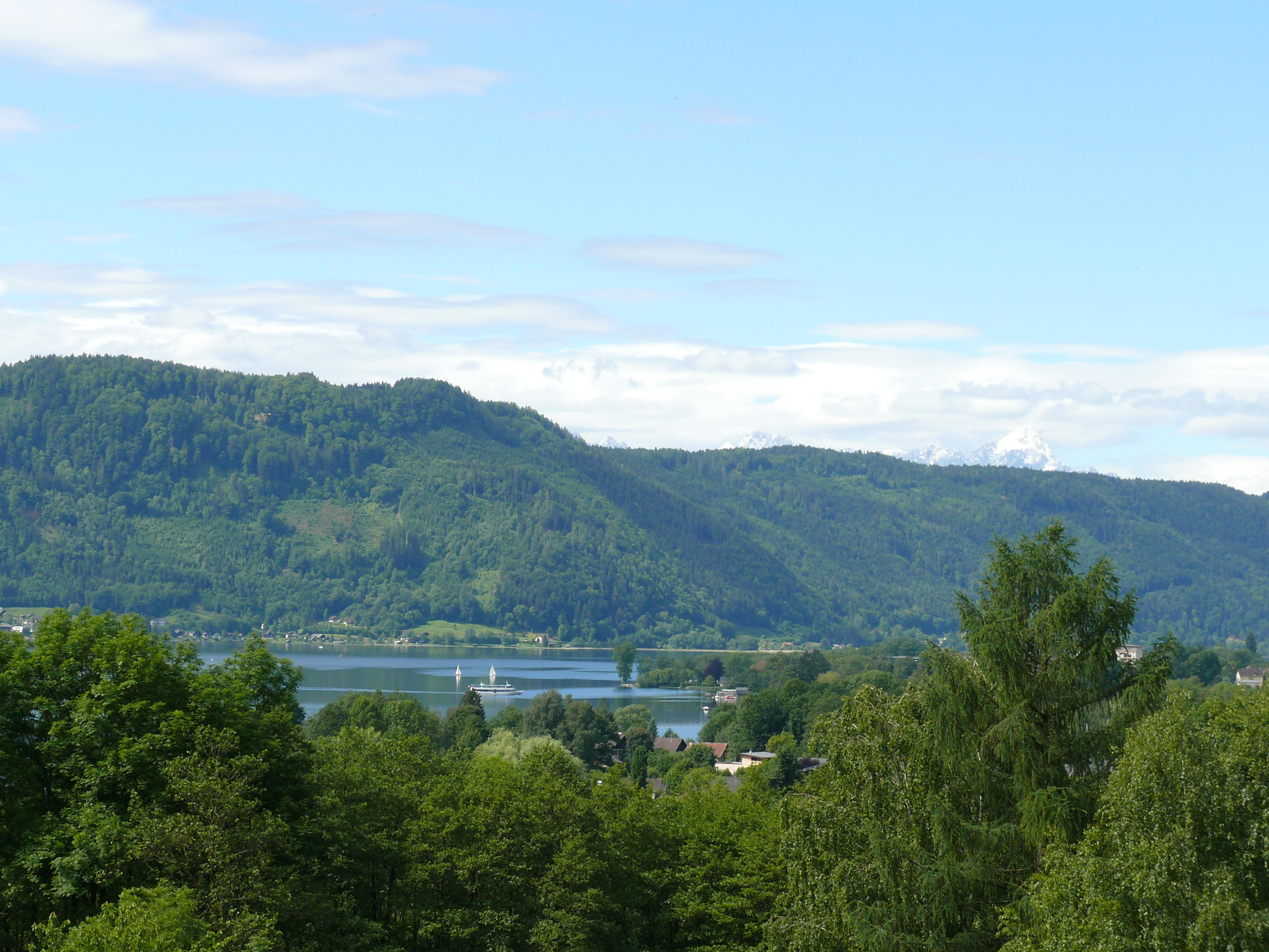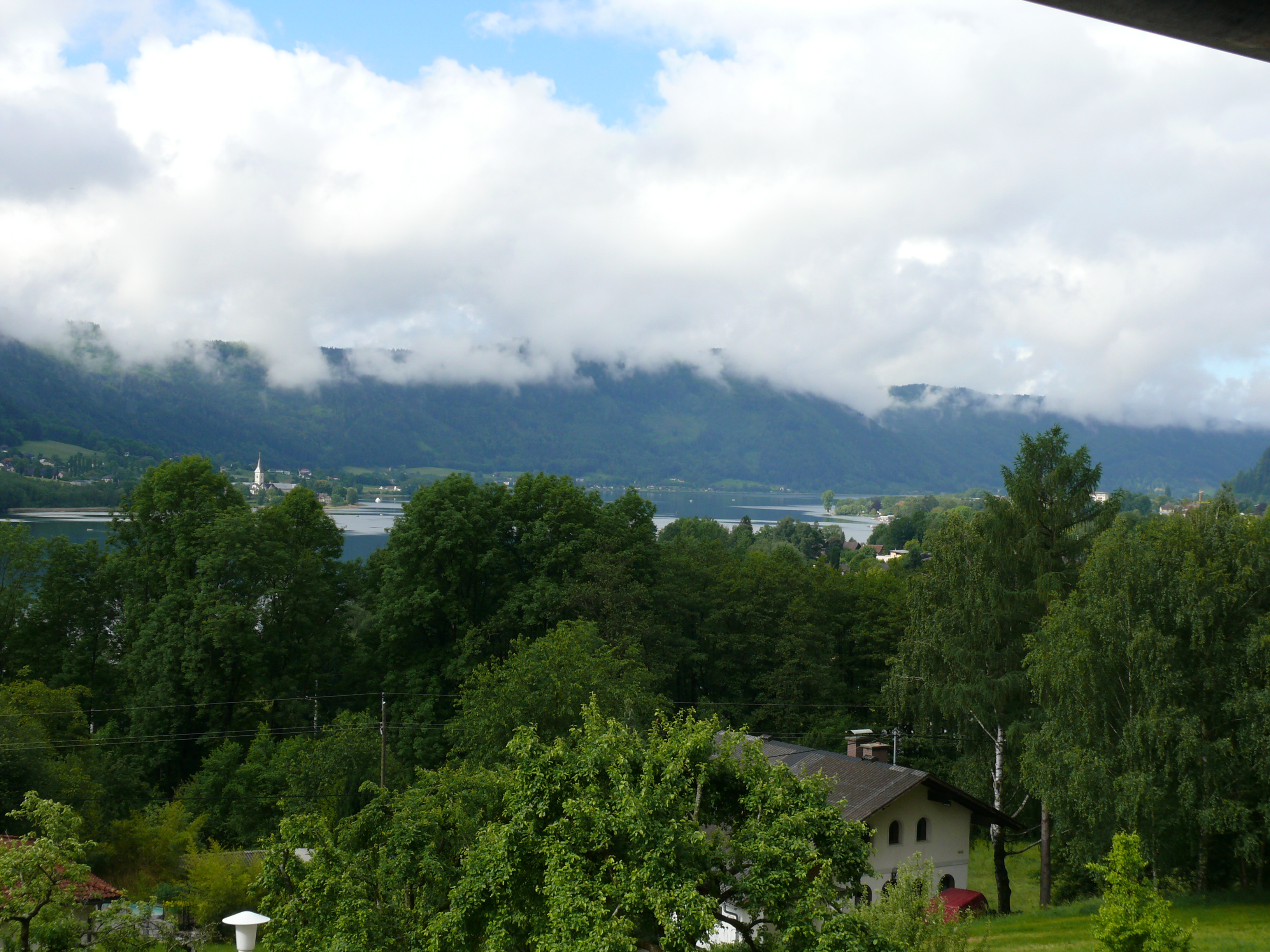 Wieder lächelt die Morgensonne auf den Balkon und über den See. Heute ist die Sicht so klar, daß man die Karawanken von den Wolken unterscheiden kann. Ich habe meine Aussicht vom Balkon immer wieder fotografiert, weil ich immer wieder etwas Neues entdeckt habe 😉
